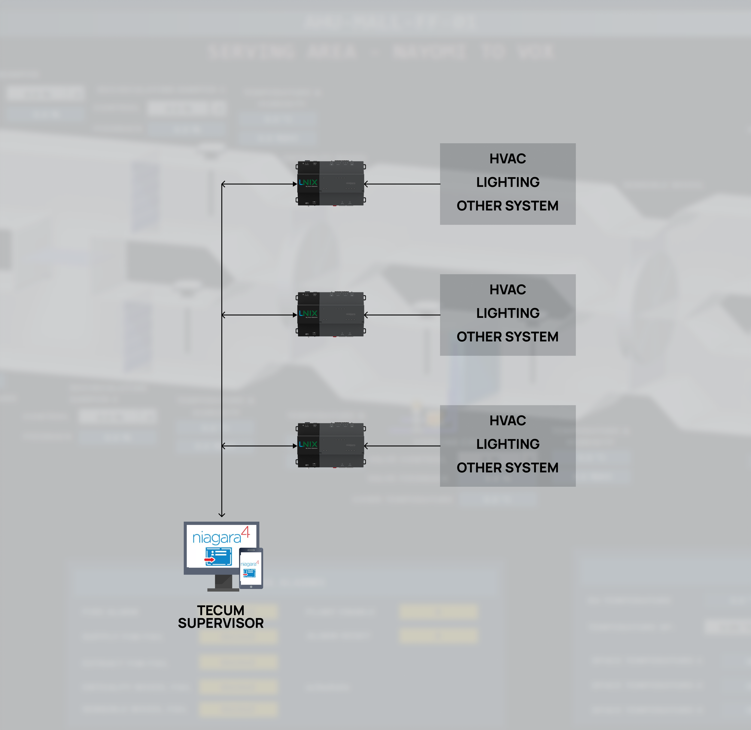 Niagara Framework, UNIX-8000 controllers, RS485 expansion cards, Tecum Supervisor Software